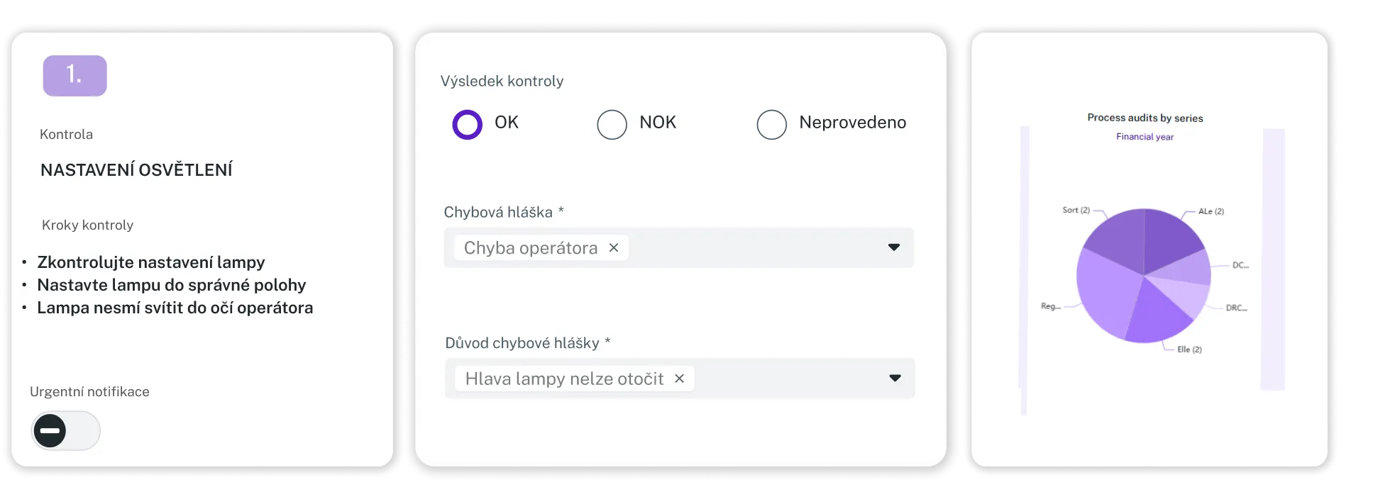 Ne. Řešení vždy zobrazuje pouze jeden krok kontroly. Další krok je dostupný až po dokončení předchozího. Zároveň umožňuje okamžitou eskalaci kritických problémů, poskytuje přehled o výsledcích kontrol v reálném čase a vytváří spolehlivý záznam pro audity.